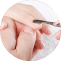 Limar la uña y el resto de cutículas con una lima de 220 o más fina y limpiar el polvo producido con un pincel.